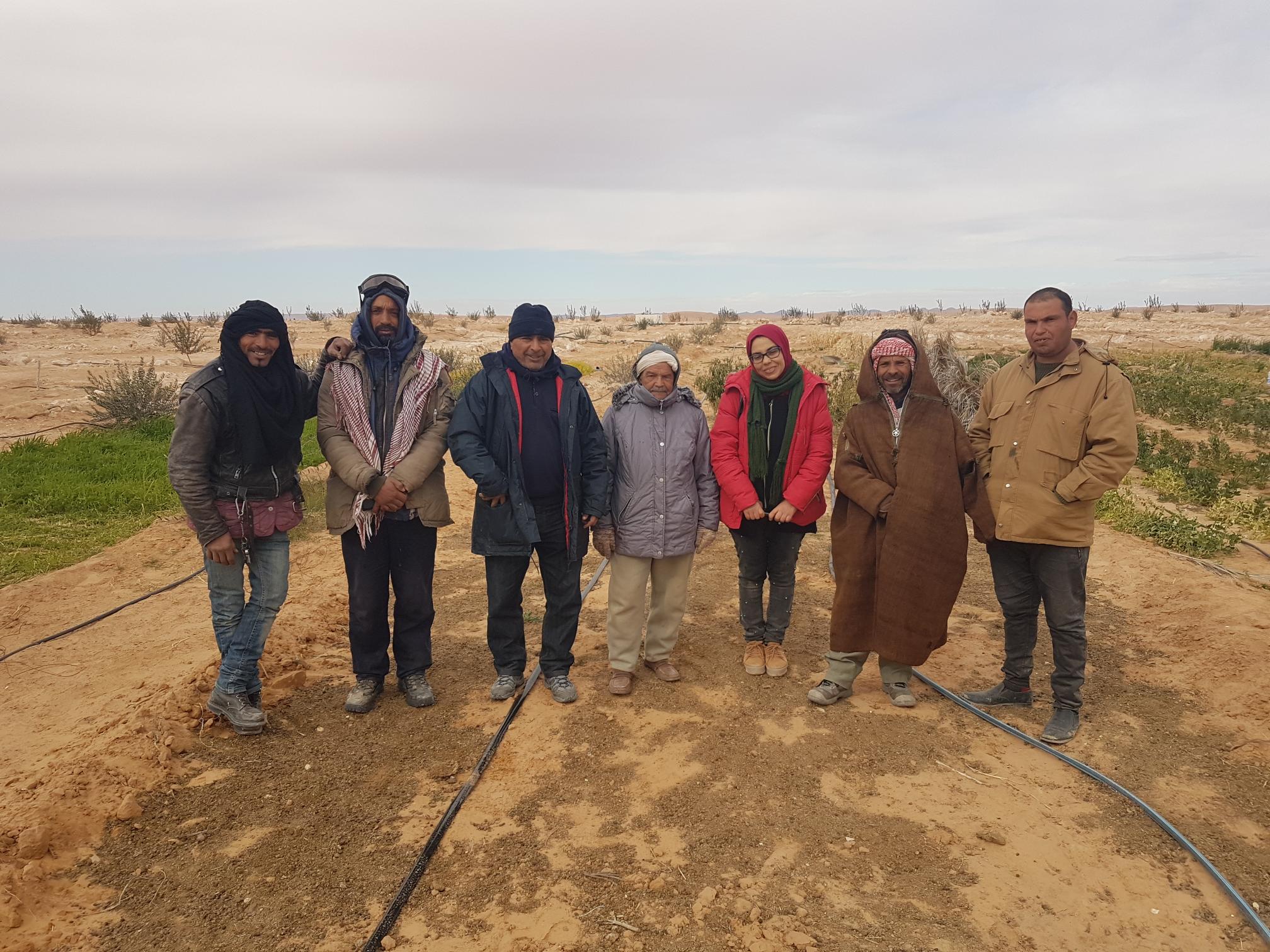 Picture shows farmers being trained on modern methods of orchard irrigation