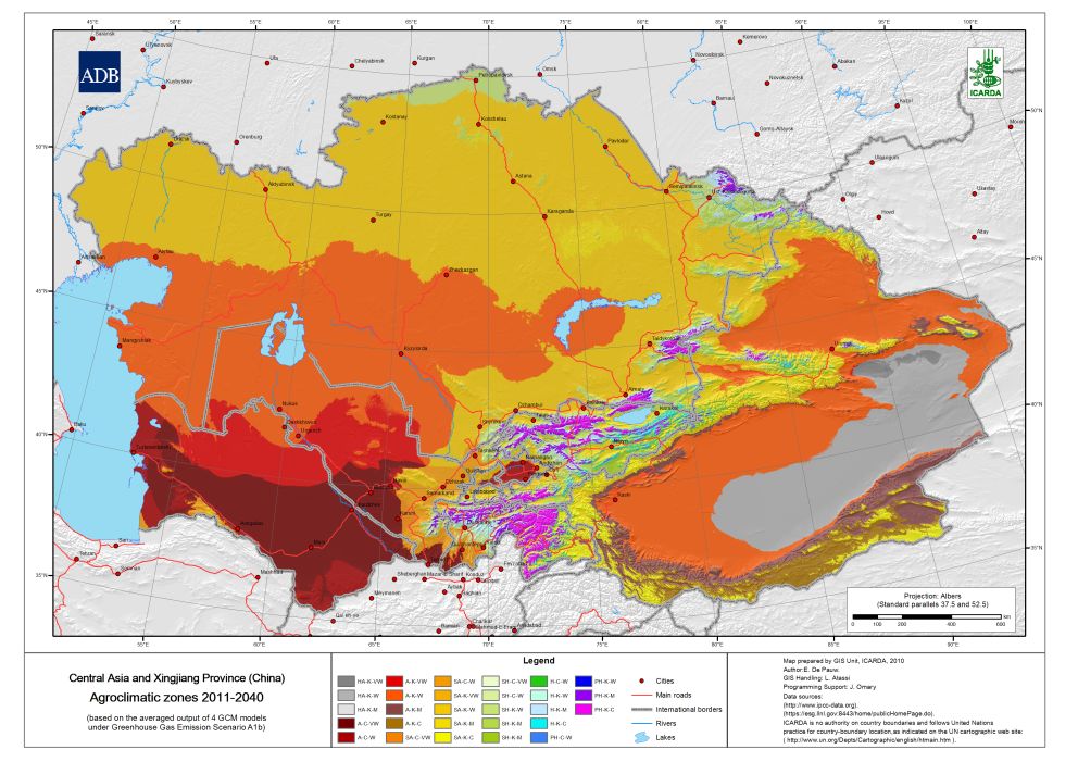 Central Asia and Xingjiang province (China) agro-climatic zones 10_40_A1b