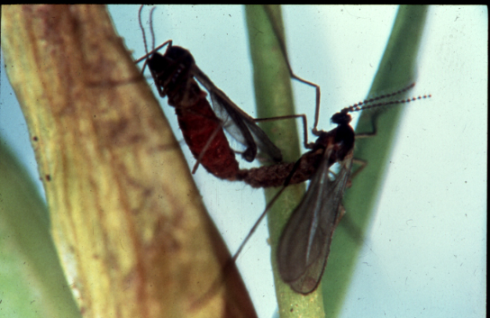 Mustapha El Bouhssini, Fawzi Rihawi, Nachit Miloudi. (30/1/2003). Mating = Copulation for Hessian fly. Aleppo, Syrian Arab Republic: International Center for Agricultural Research in the Dry Areas (ICARDA).